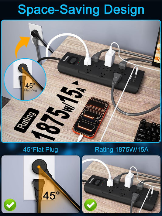 Surge Protector Power Strip (3480J), 12 Outlets with 2 USB a and 20W USB C Fast Charging, 6Ft Flat Plug, Heavy-Duty Extension Cord for Workbench, Kitchen, Garage Must Have, ETL Listed