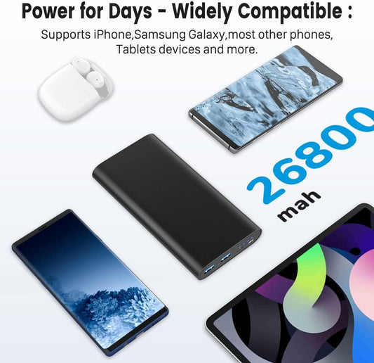 26800Mah Portable Charger Power Bank, Dual USB W/Usb-C Fast Charging Battery Pack Portable Phone Charger for Iphone 16 15 14 13 X SE 8, Ipad,Airpods,Samsung S22 S23, Google Pixel, Android Phone